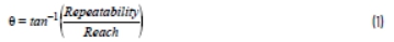 關(guān)節(jié)編碼器所需的角度可重復性(θ)可從三角函數(shù)得出:機器人可重復性除以作用范圍的反正切。