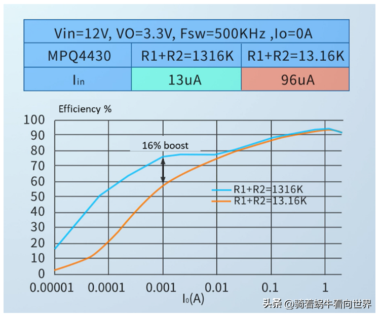 圖 2:R1 和 R2 數(shù)量級不同帶來的效率差異