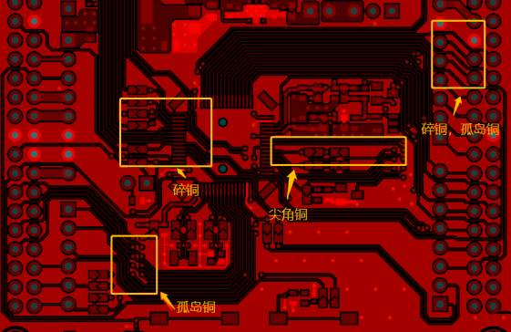 但需要注意的是我們?cè)阡佋O(shè)整版銅皮的時(shí)候需要把“沒用”的銅皮給挖掉,比如一些碎銅,尖角銅皮,孤島銅等等,這些銅皮不僅提供不了屏蔽的效果,還會(huì)影響信號(hào)質(zhì)量。