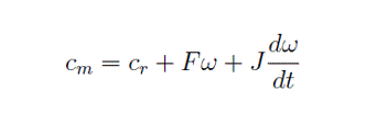 機(jī)械負(fù)載的行為幾乎總是非線性的。負(fù)載的線性模型可以通過將電機(jī)扭矩 cm 等于三個(gè)參數(shù)之和來獲得:施加在電機(jī)軸上的負(fù)載扭矩,根據(jù)摩擦系數(shù) F 與電機(jī)旋轉(zhuǎn)速度成比例的參數(shù),以及與電機(jī)轉(zhuǎn)速對(duì)轉(zhuǎn)動(dòng)慣量J的導(dǎo)數(shù)成正比的參數(shù);那是: