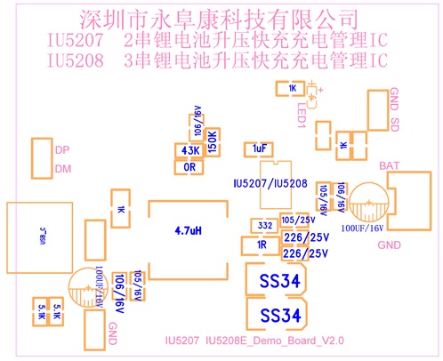 4、IU5207/IU5208 DEMO板PCB頂層設(shè)計(jì)圖