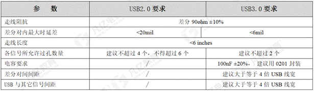 USB2.0與3.0的PCB布線要求對比如下表1所示: