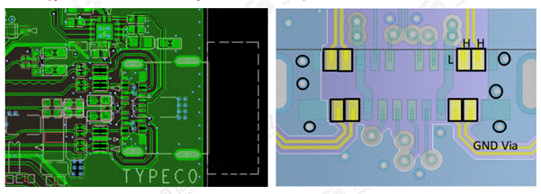 1、ESD、共模電感器件靠近Type C接口,放置的順序是ESD→共模電感→阻容;同樣也要注意ESD 和Type C的距離,留有一定的間距,考慮后焊情況。