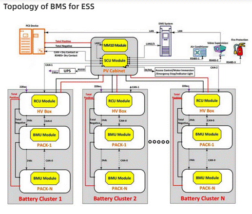 圖2:儲能BMS的拓撲圖(圖源:huasu-tech)