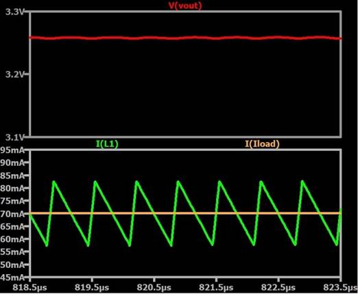 讓我們刷新一下。上次我們用這兩張圖來結束:在 LTspice 中實現(xiàn)的降壓轉換器的原理圖(圖 1);以及輸出電壓和電感電流的仿真結果(圖 2),其中包含恒定的 70 mA 負載電流作為參考。