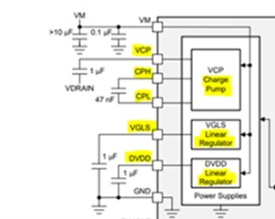 • VM 是電機驅(qū)動器 IC 的主電源,通常偏置在電機的電壓電平。
