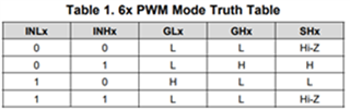 • 如果您的電機系統(tǒng)在換向時遇到問題,則需要重新考慮的是真值表邏輯。例如,它可能會說明電機啟動時出現(xiàn)故障或旋轉(zhuǎn)方向錯誤的原因。