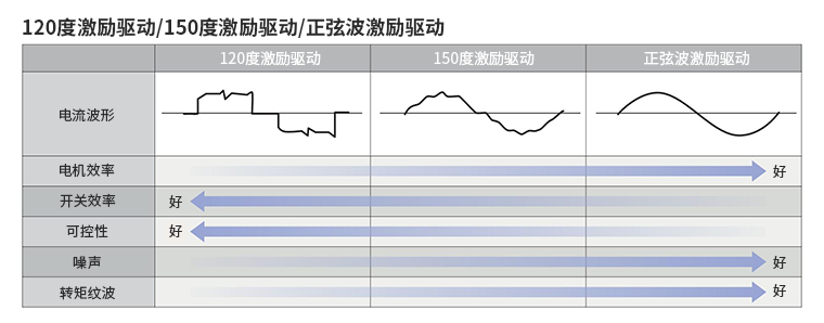 相反,120度激勵(lì)驅(qū)動(dòng)具有開(kāi)關(guān)效率高且易于控制的特點(diǎn)。