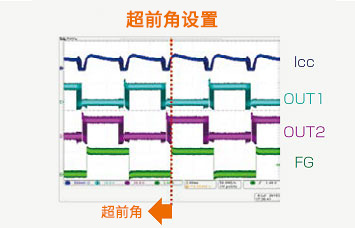 為了獲得最大扭矩,可相對(duì)于霍爾信號(hào)調(diào)整驅(qū)動(dòng)器輸出信號(hào)的相位,以保證磁鐵(轉(zhuǎn)子)磁場(chǎng)的相位和線圈的相位成90度。超前角側(cè)的超前角最大可設(shè)為22.5度。