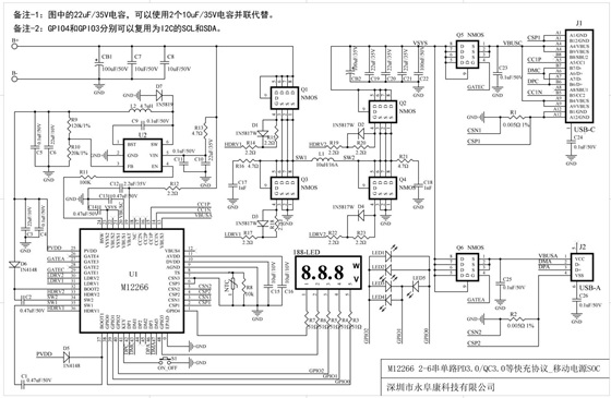 由于常見的便攜式電子設(shè)備都采用鋰電池供電,而不同設(shè)備的電采用的鋰電池串數(shù)不同。多節(jié)鋰電池充放電管理一直是一個棘手的問題。Type-C要統(tǒng)一充電接口,為不同鋰電池串數(shù)的電子設(shè)備進行充電,對充電芯片的要求是內(nèi)置快充協(xié)議的同時,還需要實現(xiàn)對不同設(shè)備鋰電池組的充放電管理。為此,深圳市永阜康科技有限公司現(xiàn)在大力推廣一顆內(nèi)置PD3.0/QC3.0等主流快充協(xié)議、3-6多節(jié)鋰電池移動電源雙向100W快充IC-M12266,配合極簡的外圍電路,即可實現(xiàn)常見便攜電子設(shè)備的Type-C快充需求。