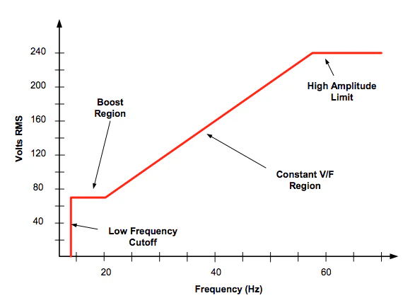 結(jié)果稱為“伏赫茲”曲線,可以如圖 1 所示繪制。沒有固定規(guī)則表明驅(qū)動電壓必須與頻率保持固定的線性關(guān)系。事實上,V/Hz 曲線的形狀經(jīng)常在特定頻率范圍內(nèi)改變,以優(yōu)化特定速度范圍內(nèi)的驅(qū)動性能。例如,圖 1 所示的輪廓形狀經(jīng)過調(diào)整,可在低頻范圍內(nèi)提供更高的電壓。當電機從靜止狀態(tài)啟動時,這種修改可以提高電機扭矩,以幫助克服負載摩擦和慣性。在電機的機械極限范圍內(nèi),您還可以將驅(qū)動頻率提高到銘牌值以上,以獲得更高的速度。然而,可用電壓可能有限,因此電機扭矩也會較低。