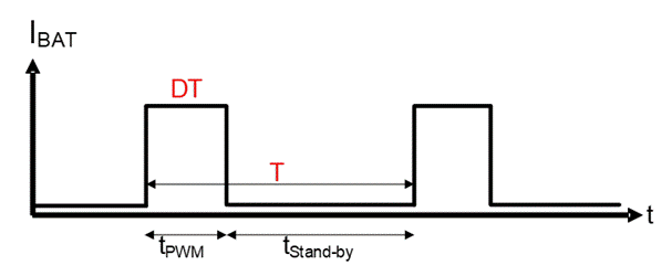 由電池供電的負(fù)載實際上并不是常開型負(fù)載,而是脈寬調(diào)制 (PWM) 負(fù)載,這意味著負(fù)載包含兩個時間段:tPWM 和 tStandby,如圖 1 所示。盡管 tStandby 占總負(fù)載周期(在圖 1 中顯示為 T)的  99.9%,但它對提升效率(尤其是輕負(fù)載效率)仍非常重要。