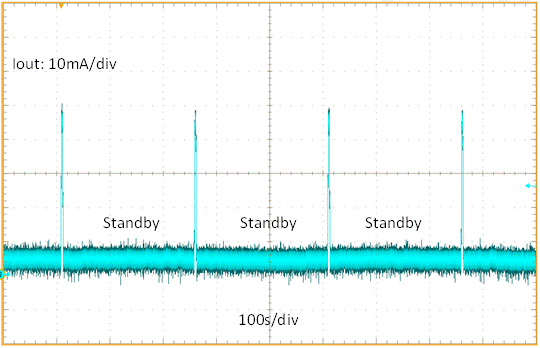 圖 4 展示了模擬前端的負(fù)載電流。如您所見,發(fā)送器在 99% 的時間處于待機(jī)模式。