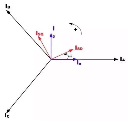 圖5:三相轉(zhuǎn)子電流與轉(zhuǎn)動(dòng)參考系的關(guān)系