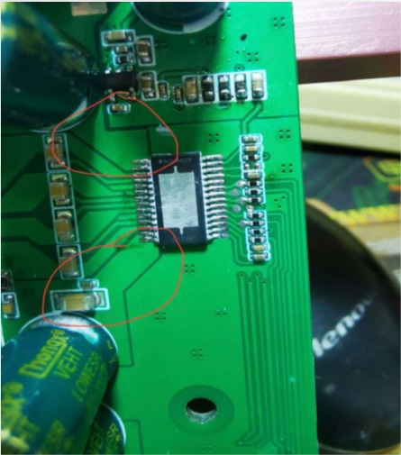 1)陶瓷貼片濾波電容擺放離芯片PVDD管腳太遠(yuǎn),導(dǎo)致功放芯片啟動(dòng)就產(chǎn)生過(guò)流保護(hù).
