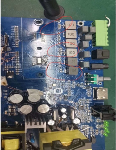 1)PCB板布局過(guò)于緊湊,輸出電感無(wú)法靠近功放輸出腳擺放,導(dǎo)致功率輸出的PWM信號(hào)走線很長(zhǎng),對(duì)EMI產(chǎn)生很大挑戰(zhàn).