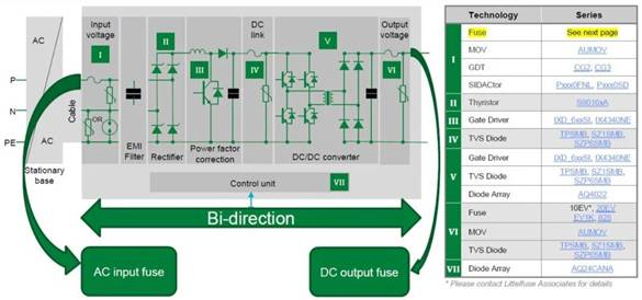 針對(duì)于油車(chē)、混動(dòng)車(chē)等會(huì)涉及較為嚴(yán)苛的5A與5B拋負(fù)載實(shí)驗(yàn),需要用到大功率TVS,對(duì)于混動(dòng)或純電車(chē),其電源端口以及信號(hào)端口會(huì)有浪涌或靜電情況出現(xiàn),因此會(huì)用到TVS與ESD二極管陣列等產(chǎn)品。車(chē)載充電機(jī)需要與外界電網(wǎng)連接,因此輸入端口需要壓敏與氣體放電管作為雷擊與浪涌保護(hù),Littelfuse MOV+Sidacotr產(chǎn)品是當(dāng)前主推的方案,可以提高M(jìn)OV壽命的同時(shí)改善后級(jí)電路殘壓,有效降低因輸入浪涌引起的整機(jī)故障率。