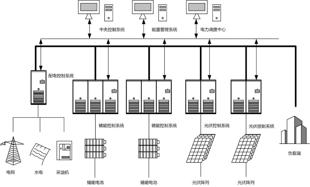 儲能系統(tǒng)是光伏微電網(wǎng)的核心組成,常配合光伏陣列、水電、電網(wǎng)等一起使用。由于電池儲能具有技術(shù)相對成熟、容量大、安全可靠、噪聲低、環(huán)境適應(yīng)性強、便于安裝等優(yōu)點,所以儲能系統(tǒng)常用電池來儲存電能。