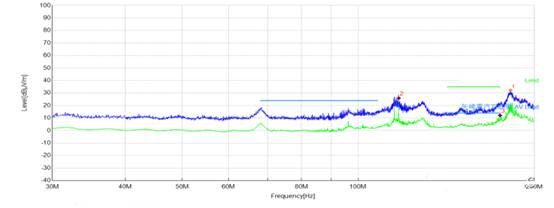 從上面的數(shù)據(jù)中可以看到,出現(xiàn)了10MHz間隔的頻率點(diǎn),并且在154MHz頻點(diǎn)處超標(biāo)。