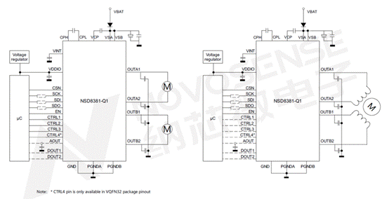 NSD8381-Q1同時提供VQFN40(6mm x 6mm)和VQFN32(5mm x 5mm)兩種封裝,更小巧的尺寸,助力客戶PCBA更高集成度,控制BOM成本。
