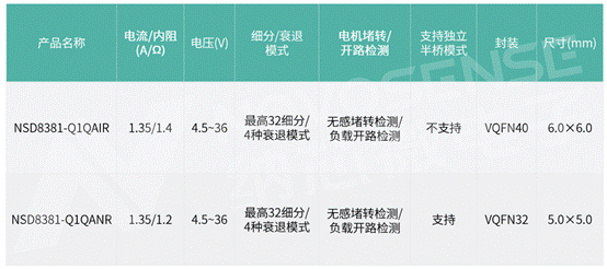 NSD8381-Q1系列產品選型表