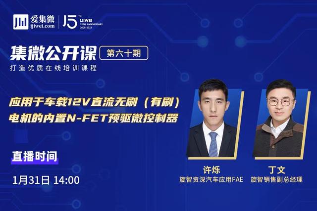 1月31日下午14點(diǎn),集微網(wǎng)舉辦第60期“集微公開課”活動(dòng),特邀旋智電子科技(上海)有限公司(簡(jiǎn)稱旋智科技)銷售副總經(jīng)理丁文和資深汽車應(yīng)用FAE許爍,為大家分享主題為” 應(yīng)用于車載12V直流無(wú)刷(有刷)電機(jī)的內(nèi)置N-FET預(yù)驅(qū)微控制器”的在線直播講解,以闡述該產(chǎn)品的技術(shù)知識(shí)、解決方案和旋智科技研發(fā)的核心功能特性。