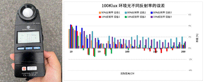 ND06傳感器具有出色的抗戶外強(qiáng)光表現(xiàn),其主要體現(xiàn)在100Klux的戶外強(qiáng)光環(huán)境下,還能保持高精度測(cè)距。同時(shí),其性能也不受不同材質(zhì)的影響。