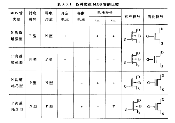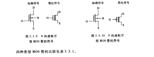 圖3.3.10 是 P 溝道耗盡型 MOS 管的符號。工作時應將它的襯底和源極相連,或?qū)⒁r底接至系統(tǒng)的電位上。