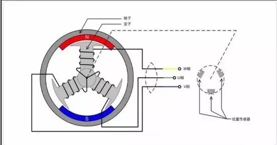 無刷直流電機(jī)的定子是線圈繞組電樞,轉(zhuǎn)子是永磁體。如果只給電機(jī)通以固定的直流電流,則電機(jī)只能產(chǎn)生不變的磁場,電機(jī)不能轉(zhuǎn)動(dòng)起來,只有實(shí)時(shí)檢測電機(jī)轉(zhuǎn)子的位置,再根據(jù)轉(zhuǎn)子的位置給電機(jī)的不同相通以對(duì)應(yīng)的電流,使定子產(chǎn)生方向均勻變化的旋轉(zhuǎn)磁場,電機(jī)才可以跟著磁場轉(zhuǎn)動(dòng)起來。