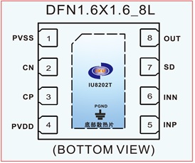 IU8202T可向16Ω負(fù)載提供高達(dá)400mW輸出功率,THD+N僅為0.006%。217Hz時(shí)具有86dB的高電源抑制比(允許該器件工作在嘈雜的數(shù)字電源,無(wú)需額外的線性穩(wěn)壓器件)。精巧的咔嗒聲抑制電路消除了啟動(dòng)與關(guān)斷過(guò)程中的可聞噪聲。低功耗關(guān)斷控制,可以在混聽模式有效的節(jié)省能源。IU8202T工作電壓范圍在2.5~5.5V, 待機(jī)時(shí)僅消耗1.3mA電源電流, 具有短路保護(hù)與熱過(guò)載保護(hù) .IU8202T封裝形式為DFN1.6X1.6_8L,其額定的工作溫度范圍為-40℃至85℃。