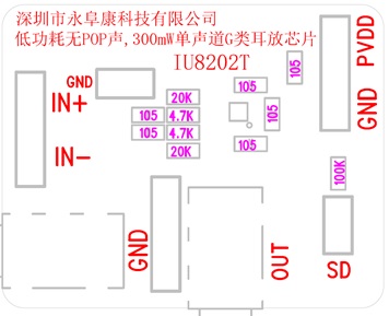 IU8202T采用單端模式輸出,其直驅(qū)模式結(jié)構(gòu)單電源供電時(shí)能夠產(chǎn)生以地為參考的輸出,從而省 去了大尺寸的隔直電容,既節(jié)省了成本和電路板空間, 也降低了元件的高度。