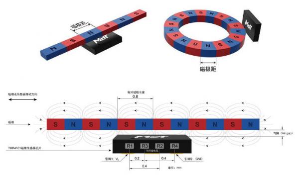 TMR4101與配套磁柵的相對(duì)位置示意圖