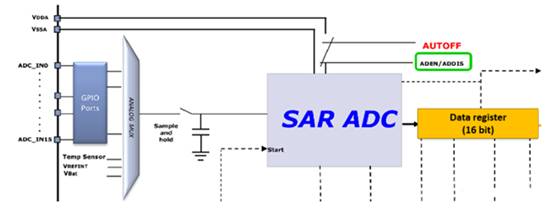 它有多達(dá) 19 個通道,可測量 16 個外部通道(從外部GPIO口連接的16通道模擬輸入)