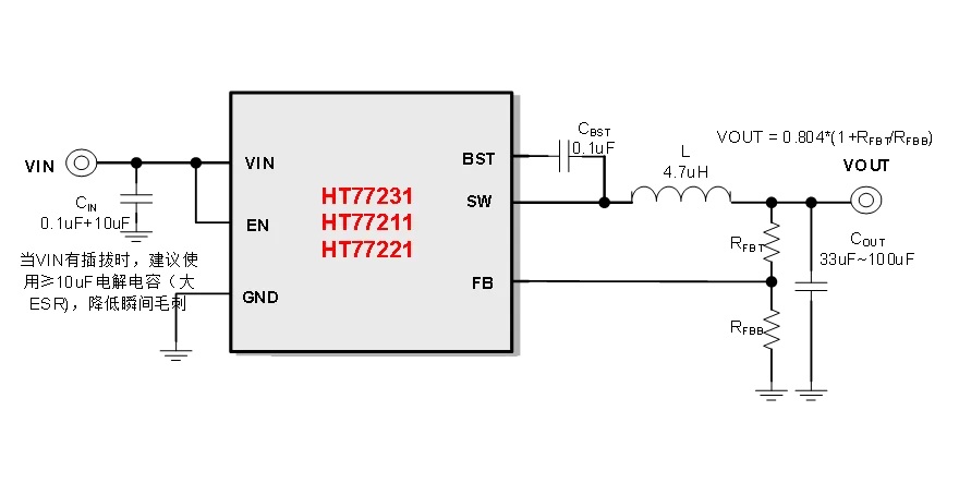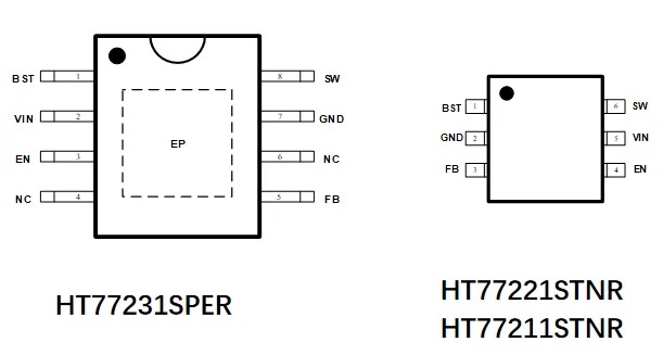 HT77221/HT77211 輸入電壓范圍:4.0V-30V ; 輸出電壓范圍:0.8V-13V ; HT77221: 2A降壓,內(nèi)置100mΩ和60mΩ功率管 ; HT77211: 1.2A降壓,內(nèi)置100mΩ和60mΩ功率管 HT771219 SOT23-6 4.0V-30V 4.0V-30V輸入、2A/1.2A同步降壓轉(zhuǎn)換器
