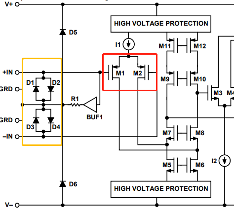 圖4 ADA4099內(nèi)部輸入架構(gòu)