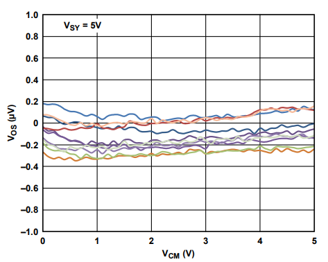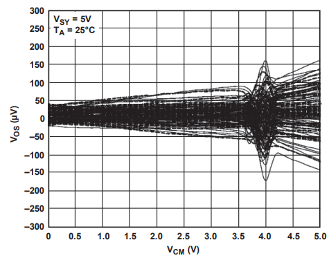 圖6 ADA4807 Vos和輸入共模電壓關(guān)系