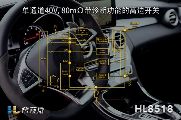 希荻微積極響應(yīng)市場需求,深耕汽車電源市場,持續(xù)研發(fā)并推出DC/DC、LDO、高邊開關(guān)等多個(gè)品類的汽車級(jí)芯片。最近,希荻微推出一款80mΩ Rds(on)帶電流檢測模擬反饋的汽車級(jí)單通道高邊開關(guān)芯片——HL8518,憑借極低功耗、高控制精度和高可靠性的優(yōu)異性能,獲得眾多汽車品牌廠商和一級(jí)供應(yīng)商的青睞。該芯片在惡劣的汽車環(huán)境下依然能保持性能穩(wěn)定,有效提升汽車電源控制系統(tǒng)的安全性和可靠性。
