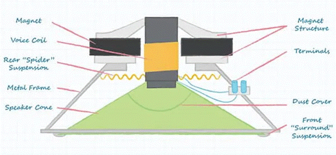圖 1:標(biāo)準(zhǔn)揚(yáng)聲器結(jié)構(gòu)(圖片來源:CUI Devices)