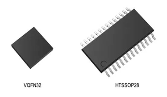 ✔ VQFN32 5.0mm×5.0mm(典型值):小型封裝節(jié)省電路板空間(TB67S569FTG,TB67S589FTG,TB67H481FTG)