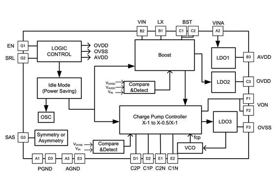 內(nèi)部集成了BOOST、chargepump、LDO結(jié)構(gòu)。