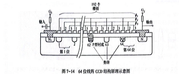 CCD電荷耦合器件是按一定規(guī)律排列的MOS(金屬—氧化物—半導(dǎo)體)電容器組成的陣列,其構(gòu)造如圖7—14所示。