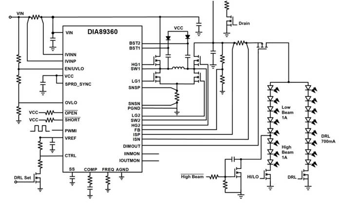 當(dāng)前,汽車(chē)前照燈正朝著小型化和高效節(jié)能的趨勢(shì)不斷發(fā)展。隨著燈具尺寸逐漸減小,LED驅(qū)動(dòng)需要具備更大的功率,以確保在有限空間內(nèi)實(shí)現(xiàn)高亮度的照明效果。同時(shí),為了降低整車(chē)電耗,緩解電動(dòng)車(chē)?yán)m(xù)航焦慮,高效率也成為L(zhǎng)ED驅(qū)動(dòng)產(chǎn)品不可或缺的特性。帝奧微最新推出的LED驅(qū)動(dòng)DIA89360完美契合了這一發(fā)展趨勢(shì),將小型化和高效節(jié)能融為一體,為汽車(chē)前照燈的未來(lái)發(fā)展提供了完美的解決方案。