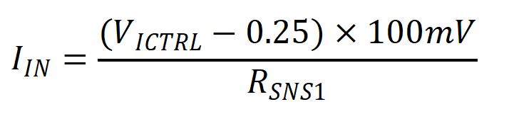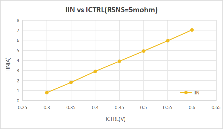 其中,Rsns1單位為毫歐(mohm)。當RSNS1=5mohm時,輸入電流IIN與ICTRL電壓關(guān)系測試結(jié)果如圖3所示: