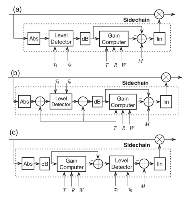 一般DRC包含分頻,擴位,峰值/均值檢測,啟動和釋放平滑增益控制等,常見動態(tài)范圍壓縮的框圖如下。