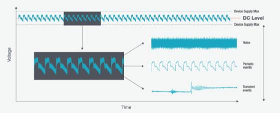 電源是芯片的能量來源,也是邏輯狀態(tài)的參考基準。如果電源的紋波和噪聲過大,會在高速變化的邏輯信號上產(chǎn)生大量抖動,進而產(chǎn)生誤碼(注:誤碼即錯誤的碼元,將邏輯1當成邏輯0,或者將0當成1),影響芯片的性能,甚至導致芯片無法正常工作。高速信號驗證中非常重要的隨機抖動和低頻的周期性抖動,就是由于電源的噪聲和紋波所引入的。
