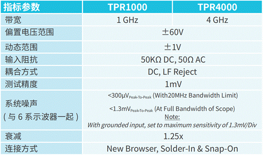 泰克的電源軌探頭TPR系列,20MHZ帶寬下的底噪的峰峰值(注意是峰峰值)低至300uV。而且TPR探頭還支持高達60V的偏置電壓,多種多樣的探頭附件,不僅測得準,用起來還很方便。