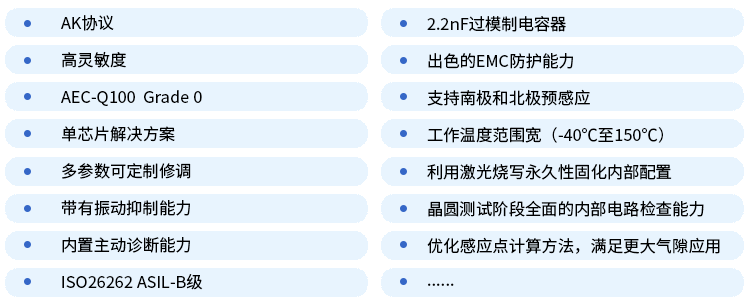 汽車中的輪速傳感器至關(guān)重要,助力準(zhǔn)確掌控車速,提高行駛安全與穩(wěn)定度。在選擇此類傳感器時(shí),應(yīng)根據(jù)需求選取適用類型,確保其性能與可靠性。對(duì)此,賽卓電子推出新一代具備功能安全ASIL-B的霍爾輪速傳感器平臺(tái)SC9684(AK數(shù)字協(xié)議脈沖信號(hào)),專為汽車輪速探測(cè)領(lǐng)域設(shè)計(jì),旨在提供卓越的輪速類解決方案,滿足更高精度的速度+方向測(cè)量。從而幫助客戶提高輪速傳感器的國(guó)產(chǎn)化率,保障供應(yīng)鏈穩(wěn)健安全。