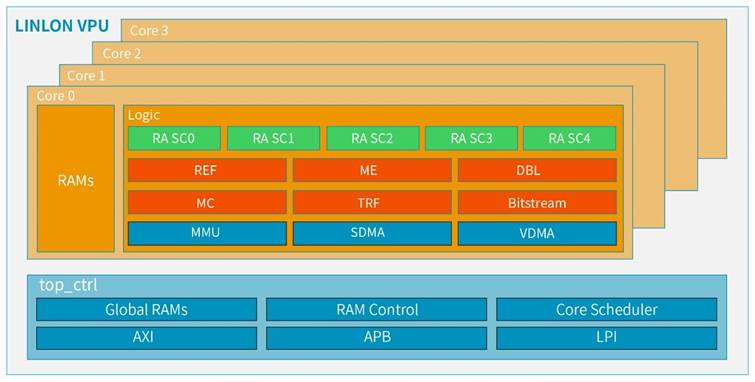 作為國內首批同時支持H.266標準的編碼及解碼視頻處理器,“玲瓏”V510/V710 VPU采用了多核多格式編解碼融合的可編程處理架構,單核的編碼或解碼性能可達到每秒4K60幀,根據(jù)端、邊、云等不同場景需求,分別提供1-4核、4-8核等多種配置。在大幅節(jié)省存儲空間及帶寬成本的同時,“玲瓏”V510/V710 VPU還能輕松按需配置,確保系統(tǒng)性能、功耗和面積的最佳平衡。