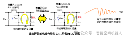 • 開關(guān)噪聲:DC/DC轉(zhuǎn)換器內(nèi)部的MOSFET或其他開關(guān)器件在高速切換時,會產(chǎn)生電壓尖峰。由于開關(guān)的高速切換,電路中會出現(xiàn)電磁干擾(EMI)和寄生電感引發(fā)的電壓過沖或下沖。