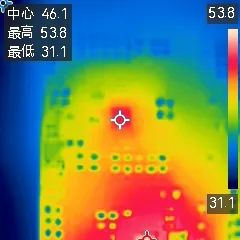 M12229H放電20分鐘后,芯片溫度僅為46.1℃,電感溫度為60.1℃,溫度表現(xiàn)可圈可點(diǎn)。